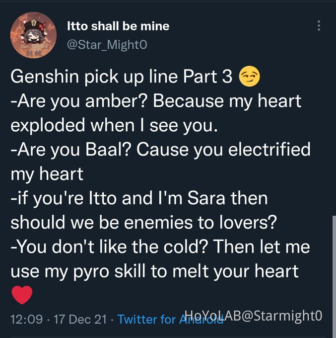 Here S Some Genshin Pick Up Lines For You All Part 1 R Genshin Impact